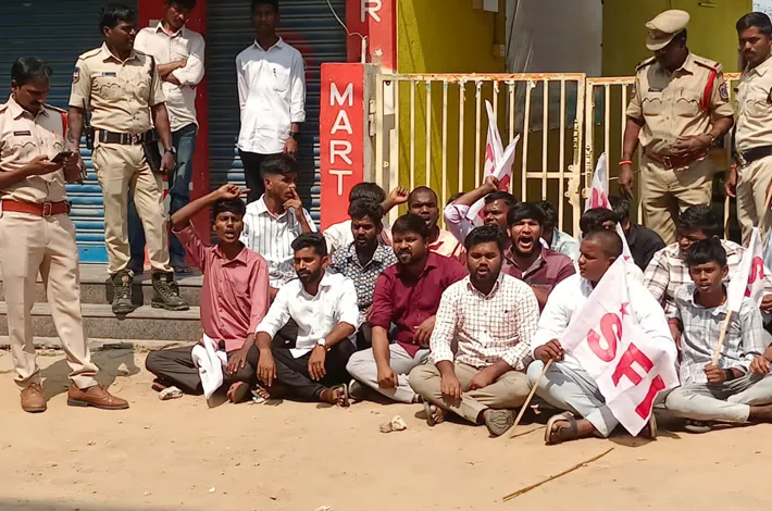 ఇబ్రహీంపట్నంలోనీ లయోలా హై స్కూల్ వద్ద ఎస్ఎఫ్ఐ ఆధ్వర్యంలో నిరసన..