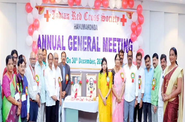 హనుమకొండ,డిసెంబర్ 30 (విజయ క్రాంతి): ఇండియన్ రెడ్ క్రాస్ సొసైటీ హనుమకొండ జిల్లా సర్వసభ్య సమావేశం మం గళవారం హనుమకొండ సమీకృత జిల్లా కా ర్యాలయ భవనంలో జిల్లా కలెక్టర్, రెడ్ క్రాస్ సొసైటీ అధ్యక్షురాలు స్నేహ శబరీష్ అధ్యక్షతన ఘనంగా నిర్వహించబడింది.ఈ సమా వేశానికి ముందు జిల్లా కలెక్టర్ మరియు రెడ్ క్రాస్ సొసైటీ అధ్యక్షురాలు స్నేహ శబరీష్ , రెడ్ క్రాస్ పాలకవర్గ సభ్యులతో కలిసి ఇండియన్ రెడ్ క్రాస్ సొసైటీ వ్యవస్థాపకులు జీన్ హెన్రీ డ్యూనాంట్ మరియు రక్తదాన ఉద్య మ పితామహులు కార్ల్ ల్యాండ్స్టైనర్ చిత్రపటాలకు పూలమాలలు వేసి కార్యక్రమాన్ని ప్రారంభించారు.