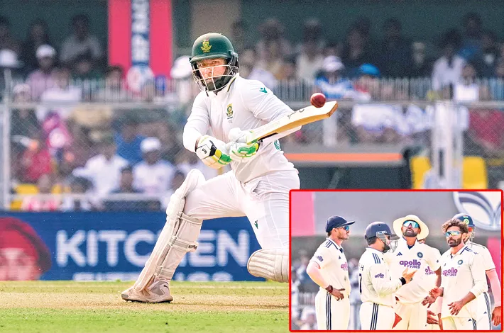 ముత్తుసామి 109(10 ఫోర్లు, 2 సిక్సర్లు) రన్స్కు ఔటైన తర్వాత చివరి రెండు వికెట్లకు 50కి పైగా పరుగులు జోడించిన ఘనత జెన్సన్కే దక్కుతుంది. ఓ దశలో అతను కూ డా సెంచరీ చేసేలా కనిపించాడు. చివరికి జెన్సన్ 93 (91 బంతుల్లో 6 ఫోర్లు,7 సిక్స ర్లు) రన్స్కు ఆఖరి వికెట్గా వెనుదిరగడంతో సౌతాఫ్రికా ఇన్నింగ్స్కు 489 పరు గుల దగ్గర తెరపడింది. భారత బౌలర్లలో కుల్దీప్ యాదవ్ 4, జడేజా 2, సిరాజ్ 2, బుమ్రా 2 వికెట్లు తీశారు.