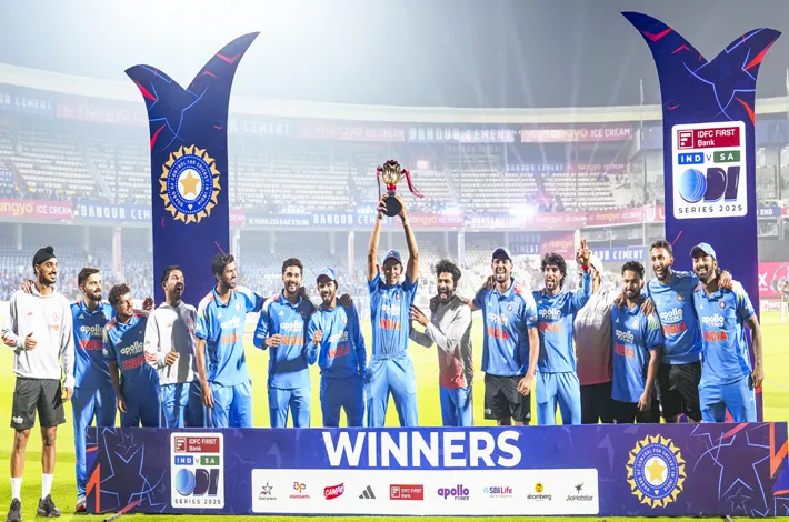 హైదరాబాద్, డిసెంబర్ 6 (విజయక్రాంతి): సౌత్ ఆఫ్రికాతో మూడు వన్డేల సిరీ స్ను భారత్ 2 కైవసం చేసుకుంది. శనివారం విశాఖపట్నంలో జరిగిన ఆఖరి వన్డే లో 9 వికెట్ల తేడాతో మరో 10.1 ఓవర్లు మిగిలిఉండగానే లక్ష్యాన్ని ఛేదించి, ఘన విజయం సాధించింది. టాస్ గెలిచి ఫీల్డింగ్ ఎంచుకున్న ఇండియా.. సఫారీలను బ్యాటింగ్కు ఆహ్వానించింది. సఫారీలు 47.5 ఓవ ర్లలో 270 పరుగులకు ఆలౌటయ్యారు. ఈ లక్ష్యాన్ని టీమ్ండియా 39.5 ఓవర్లలోనే ఒకే ఒక వికెట్ కోల్పోయి ఛేదించింది.