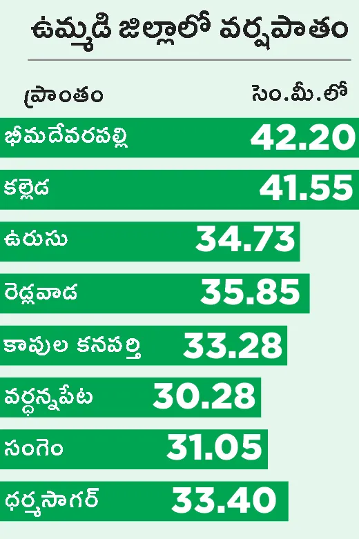 - భీమదేరపల్లిలో అత్యధికంగా 42.20 సెం.మీ వర్షం