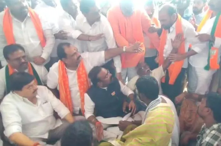 బెల్లంపల్లి (విజయక్రాంతి): సాక్షాత్తు రాష్ట్ర బీజేపీ అధ్యక్షుడు రామచందర్ రావు సమక్షంలో మంగళవారం ఇద్దరు బీజేపీ అగ్ర నాయకులు నోరు పారేసుకున్నారు. మంగళవారం మంచిర్యాల జిల్లా వేమనపల్లి మండలం నీల్వాయి గ్రామంలో ఈ ఘటన చోటుచేసుకోవడం బీజేపీ వర్గాలను నివ్వెర పరిచింది. ఇటీవల కాంగ్రెస్ నాయకుల తప్పుడు కేసు వల్ల మనస్థాపం చెంది ఆత్మహత్య చేసుకున్న బీజేపీ నాయకుడు ఏట మధుకర్ కుటుంబాన్ని పరామర్శించేందుకు బీజేపీ రాష్ట్ర అధ్యక్షులు రామచందర్ రావు గ్రామానికి వచ్చారు. ఈ క్రమంలో కుటుంబాన్ని పరామర్శిస్తున్న క్రమంలో పెద్దపల్లి బీజేపీ పార్లమెంటు ఇన్చార్జి గోమాస శ్రీనివాస్ అక్కడే ఉన్న పెద్దపెల్లి మాజీ పార్లమెంటు సభ్యులు వెంకటేష్ నేతను అరేయ్ వెంకటేష్ అని సంబోధించారు.
