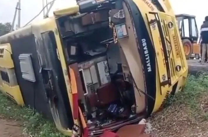 నల్లగొండ, అక్టోబర్ 20 (విజయక్రాంతి): ఆదివారం తెల్లవారుజా మున విజయవాడ నుంచి హైదరాబాద్కు 40 పశువులతో వ్యాన్ వెళ్తున్నది. నార్కెట్పల్లి శివారులో జాతీయ రహదారిపై ఉన్న వివేరా హోటల్ సమీపంలోకి రాగానే ఆర్టీసీ బస్సును వెనుక నుంచి ఢీకొని బోల్తాపడింది. ప్రమాదంలో వ్యాన్ లో ప్రయాణిస్తున్న ఇద్దరికి గాయాలయ్యాయి. రెండు ఆవులు, ఏడు ఎద్దులు మృత్యువాత పడ్డాయి. వ్యాన్ డ్రైవర్ ఘటనాస్థలం నుంచి పరారయ్యాడు. ఆర్టీసీ బస్సు వెనుక భాగం స్వల్పంగా దెబ్బతిన్నది.