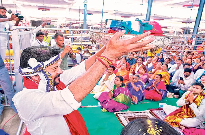 ముఖ్యమంత్రి రేవంత్ రెడ్డి సతీ సమేతంగా సీతారాముల కల్యాణ మహోత్సవ వేడుకల్లో పాల్గొన్నారు. ప్రత్యే క హెలికాప్టర్లో భద్రాచలం తరలివచ్చిన సీఎం తొలుత సీతారామచంద్ర స్వామి ఆలయంలో స్వామి వారిని కుటుంబ సభ్యులతో దర్శించుకున్నారు. ఆలయం వద్ద రూ.351 కోట్లతో చేపట్టిన ఆలయ అభివృద్ధి తొలిదశ పనులకు భూమి పూజ నిర్వహించారు.రాష్ట్ర ప్రభుత్వం తరఫున స్వామివారికి పట్టు వస్త్రాలు, ముత్యాల తలంబ్రాలు సమర్పించారు.