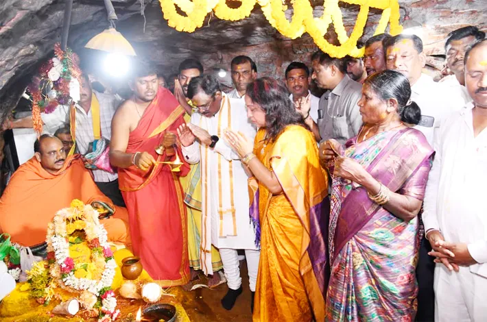 ఆలయంలో అతను కలెక్టర్ కిషోర్ కుమార్ మాజీ మంత్రి ఇంద్రకరణ్ రెడ్డి తోపాటు మార్కెట్ కమిటీ చైర్మన్ భీమ్ రెడ్డి దేవాదాయ శాఖ అధికారులు పూజలు నిర్వహించారు భక్తులకు ఎలాంటి ఇబ్బంది కలగకుండా ఆలయ కమిటీ చైర్మన్ వెంకట్రావు ఆధ్వర్యంలో ప్రత్యేక పూజలు నిర్వహించారు ఈ కార్యక్రమంలో ప్రధాన పూజారులు పంచాక్షరి సిద్దు శంకర్ తదితరులు పాల్గొన్నారు