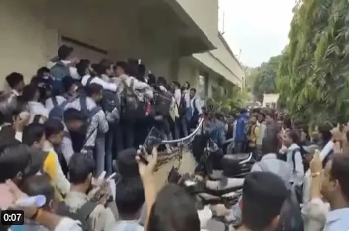గాంధీనగర్, జూలై 11 : దేశంలో నిరుద్యోగం ఏ స్థాయిలో ఉందో చెప్పే ఓ ఘటన కు సంబంధించిన వీడియో సోషల్ మీడియాలో వైరల్ అవుతోంది. గుజరాత్ రాష్ట్రం భరూచ్ జిల్లా అంకలేశ్వర్ సిటీలో థర్మాక్స్ అనే ఓ ప్రైవేటు కంపెనీ ఉద్యోగ ప్రకటన ఇచ్చింది. షిఫ్ట్ ఇన్ఛార్జ్, ప్లాంట్ ఆపరేటర్, సూపర్వైజర్, మెకానికల్ ఫిట్టర్, ఎగ్జిక్యూటివ్ ఇలా 5 పోస్టుల భర్తీ కోసం కెమికల్ ఇంజినీరింగ్లో బీఈ/బీటెక్, ఐటీఐ పూర్తి చేసిన వారు వాక్ఇన్కు హాజరు కావచ్చని తెలిపింది. వాక్ఇన్ ఇంటర్వ్యూకు నిరుద్యోగులు పోటెత్తారు. కేవలం 10 ఉద్యోగ ఖాళీల కోసం వేలాది మంది తరలివచ్చారు. నిరుద్యోగుల తాకిడికి హోటల్ ఆవరణలోని సెక్యూరిటీ రెయిలింగ్స్ విరిగిపోయాయి. తోపులాటలో కొంతమంది నిరుద్యోగులు కొంద పడిపోయారు. తొక్కిసలాట తరహా ఉన్న ఈ వీడియో సోషల్ మీడియాలో వైరల్గా మారింది.