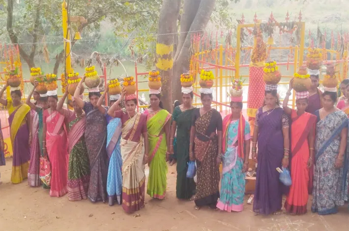 మహబూబాబాద్, ఫిబ్రవరి 4 (విజయక్రాంతి): మహబూబాబాద్ జిల్లా గూడూరు మండలం చింతల గట్టు వట్టి వాగు గబ్బిలాల మడు గు, సమ్మక్క సారలమ్మ జాతర ముగింపు సందర్భంగా బుధవారం తిరుగువారం పండుగ ఘనంగా నిర్వహించారు. ఆదివాసి పూజారులు గద్దెల ప్రాంగణాన్ని శుభ్రం చేసి పూజలు నిర్వహించారు. తెలుగు వారం పండగ వేడుకలో ఆదివాసి పూజారులు దారం సిద్దు, జాతర కమిటీ అధ్యక్షుడు కారం లక్ష్మయ్య ఆధ్వర్యంలో సంప్రదాయ పద్ధతిలో సమ్మక్క, సారలమ్మ, పగిడిద్దరాజు, గోవిందరాజు వనదేవతలకు ప్రత్యేక పూజా కార్యక్రమాలు నిర్వహించారు. మహిళలు వన దేవతలకు బోనాలతో తరలివచ్చి నైవేద్యం సమర్పించారు. పెద్ద ఎత్తున తిరుగు వారం వేడుకకు భక్తులు హాజరయ్యారు.