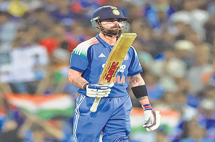 దుబాయి, నవంబర్ 12 : ఐసీసీ వన్డే ర్యాంకింగ్స్లో భారత క్రికెటర్ల హవా కొనసాగుతోంది. తాజాగా విడుదలైన బ్యాటింగ్ జాబితాలో టాప్ ముగ్గురు టీమిండియా ప్లేయర్సే ఉన్నారు. రోహిత్ శర్మ అగ్ర స్థానాన్ని నిలబెట్టుకోగా..శుభమన్ గిల్ నాలుగో స్థానంలో కొనసాగుతున్నాడు. స్టార్ క్రికెటర్ విరాట్ కోహ్లీ టాప్న దూసుకొచ్చాడు. ఈ క్రమంలో పాక్ క్రికెటర్ బాబర్ అజామ్ను వెనక్కి నెట్టిన కోహ్లీ ఐదో ర్యాంకులో నిలిచాడు.