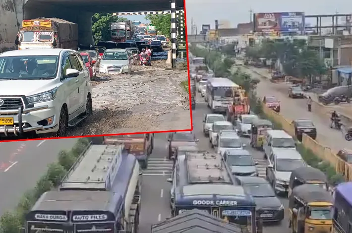 హైదరాబాద్: నల్గొండ జిల్లా చిట్యాల వద్ద హైదరాబాద్-విజయవాడ హైవేపై(Hyderabad-Vijayawada highway ) భారీగా ట్రాఫిక్ జామ్ అయింది. చిట్యాల రైలు వంతెన కింద భారీగా వరద నీరు చేరింది. చిట్యాల వంతెన కింద నీరు వల్ల వాహనాలు నెమ్మదిగా కదులుతున్నాయి. హైదరాబాద్ నుంచి నార్కట్ పల్లి వైపు వాహనాలు నెమ్మదిగా కదులుతున్నాయని ట్రాఫిక్ పోలీసులు తెలిపారు. పెద్దకాపర్తి నుంచి చిట్యాల వరకు 5 కిలో మీటర్ల మేర వాహనాలు నిలిచిపోయాయి. ఇటీవల మొంథా తుపాన్ ప్రభావంతో తెలంగాణలోని పలు జిల్లాల్లో భారీ వర్షాలు కురిశాయి. ఉమ్మడి నల్గొండ జిల్లా వ్యాప్తంగా భారీ వర్షాలు కురిశాయి.
