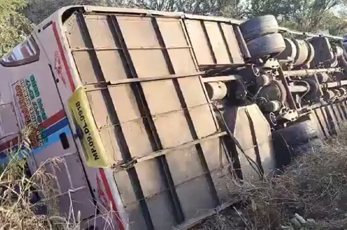 హైదరాబాద్: సంగారెడ్డి జిల్లాలోని కోహిర్ మండలం(Kohir Mandal) చింతల్ఘాట్ సమీపంలో మంగళవారం తెల్లవారుజామున జాతీయ రహదారి 65పై కర్ణాటక నుండి హైదరాబాద్(Karnataka to Hyderabad) వెళ్తున్న ఒక ప్రైవేట్ ట్రావెల్స్ బస్సు బోల్తా పడింది. ఎదురుగా వస్తున్న మరో బస్సును తప్పించే ప్రయత్నంలో డ్రైవర్ నియంత్రణ కోల్పోవడంతో వాహనం రోడ్డు పక్కకు దూసుకెళ్లింది.