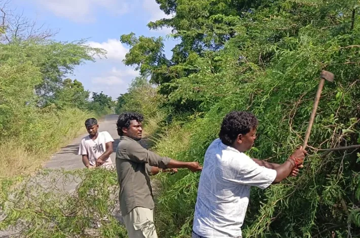 బెజ్జంకి: బెజ్జంకి మండలం పోతారం గ్రామ యువకులు శ్రమదానం చేసి గ్రామానికి వెళ్లే దారిలోని చెట్లను తొలగించి ప్రయాణానికి సుగమం చేశారు. బెజ్జంకి నుంచి పోతారం, శనిగరం, సిద్దిపేట, జాతీయ రహదారికి వైపు వెళ్లే రోడ్డుకు ఇరువైపులా చెట్లు, చేమలు పెరిగి నిత్యం వాహనాల రాకపోకలకు ఇబ్బందులు ఎదురవుతున్నాయి. చెట్ల కొమ్మలు బాగా పెరిగి రోడ్డు వైపునకు విస్తరించాయి. దీంతో రాత్రి సమయంలో ఎదురుగా వచ్చే వాహనం కనబడని స్థితి ఏర్పడింది. రోడ్డులో వాహనాలు ప్రమాదానికి గురయ్యే పరిస్థితి ఏర్పడింది.
