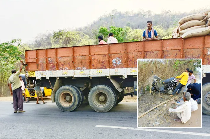 బియ్యం బస్తాలు పడి ఇరువురికి గాయాలు