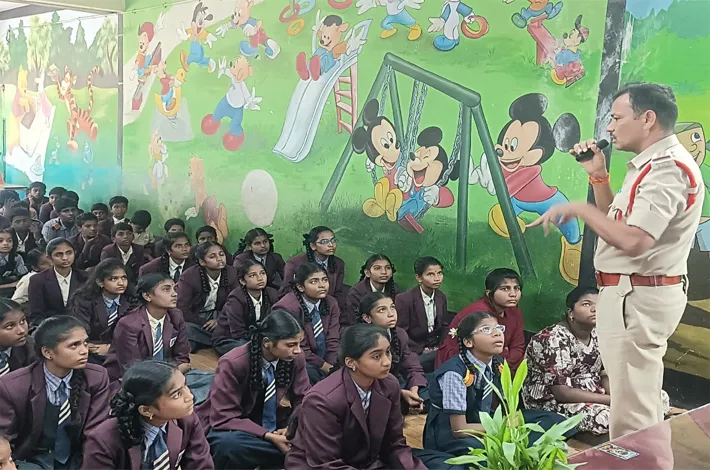 సిద్దిపేట క్రైం: చదువుకునే వయసులో చెడు ఆలోచనలకు తావియ్యకూడదని టూటౌన్ ఇన్స్పెక్టర్ ఉపేందర్ విద్యార్థులకు సూచించారు. శుక్రవారం స్థానిక కాకతీయ టెక్నో స్కూల్ విద్యార్థులకు మహిళల రక్షణకు ఉన్న చట్టాలు, సైబర్ నేరాలు, గుడ్ అండ్ బాడ్ టచ్, గంజాయి, ఇతర మత్తు పదార్థాలు, ఈవ్ టీజింగ్ తదితర చట్టాలపై అవగాహన కల్పించారు. ఈ సందర్భంగా ఆయన మాట్లాడుతూ, అవసరమైన మేరకు మాత్రమే సోషల్ మీడియా ఉపయోగించాలన్నారు. సైబర్ నేరాల పట్ల అప్రమత్తంగా ఉండాలని సూచించారు. గుర్తుతెలియని వ్యక్తులు పంపించే లింకులు ఓపెన్ చేయవద్దన్నారు. ఎవరైనా సైబర్ నేరాల బారిన పడితే వెంటనే హెల్ప్ లైన్ నెంబర్ 1930 కాల్ చేసి ఫిర్యాదు చేయాలని సూచించారు. షీటీమ్ విధులు, ఫోక్సో, బాల్య వివాహాల పరిణామాల గురించి వివరించారు.