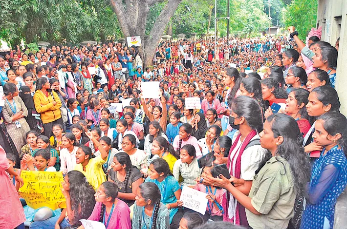 కోఠి మహిళా వర్సిటీ విద్యార్థినుల ఆందోళన