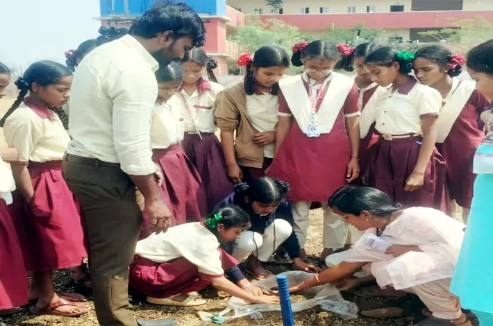 నాగల్ గిద్ద, ఫిబ్రవరి 19: శాస్త్రీయ వ్యవసాయ సాగుపై విద్యార్థులకు అవగాహన కల్పించేందుకు గురువారం మండల కేంద్రంలోని కరస్ గుత్తి గిరిజన గురుకుల స్కూల్లో వ్యవసాయశాఖ ఆధ్వర్యంలో సాయిల్ హెల్త్ ప్రోగ్రాం నిర్వహించారు. మట్టి నమూనా సే కరించే విధానంపై క్షత్రస్థాయిలో అవగాహన కల్పించి మట్టిలో పోషకాలు, సమతుల్యత, పంటల దిగుబడిపై వివరించారు. సేంద్రియ ఎరువుల వినియోగం, పంటల మార్పిడి ప ద్ధతులపై తెలియజేశారు. ఏవో ప్రవీణ్ చారి, ఏఈవో స్రవంతి, పాఠశాల ఉపాధ్యాయులు పాల్గొన్నారు.