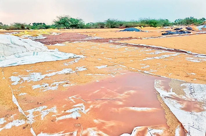 కొనుగోలు కేంద్రాల్లో తడిసిన ధాన్యం