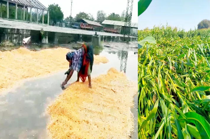 హుజురాబాద్/కోరుట్ల(విజయక్రాంతి): కరీంనగర్ జిల్లా హుజురాబాద్ మండల వ్యాప్తంగా సోమవారం రాత్రి గాలిదుమారం బీభత్సం సృష్టించింది. కంకి దశలో ఉన్న మొక్కజొన్న పంట తీవ్రమైన గాలుల దాటికి నేలకూలింది. చేతికొచ్చిన పంటను ప్రకృతి విపత్తు పగబట్టడంతో రైతులు తీవ్ర ఆవేదన వ్యక్తం చేస్తున్నారు. జగిత్యాల జిల్లా కోరుట్ల మండలంలో అర్ధరాత్రి కురిసిన అకాల వర్షాలు ఈదురు గాలుల దాటికి వరి మొక్కజొన్న మామిడి పంటలు మొత్తం నేలకొరిగాయి. వ్యవసాయ మార్కెట్లో సుమారు 400 క్వింటాళ్ల మొక్కజొన్న ధాన్యం తడిసి ముద్దయ్యింది.