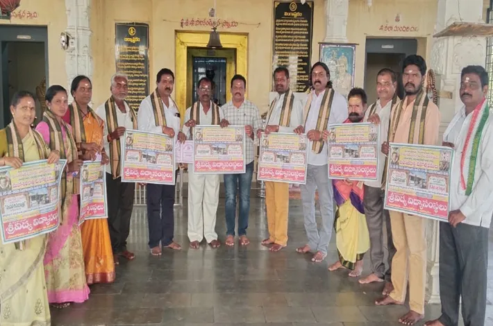 మణుగూరు,(విజయక్రాంతి): మహాశివరాత్రి పర్వదినాన్ని పురస్కరించుకొని దేవాదాయ ధర్మదాయ శాఖ భద్రాద్రి కొత్తగూడెం జిల్లా మణుగూరు శ్రీ నీలకంఠేశ్వర స్వామి దేవస్థానం(Manuguru Sri Neelakanteswara Swamy Temple)లో మంగళవారం మహాశివరాత్రి వేడుకల(Mahashivratri Celebrations) విస్తృత ప్రచార నిమిత్తం గోడ పత్రికలు, కరపత్రాలను ఆవిష్కరించారు. ఫిబ్రవరి 26న నిర్వహించే మహా శివరాత్రి వేడుకల్లో భక్తులకు ఎటువంటి అసౌకర్యం కలగకుండా ఏర్పాట్లను ఘనంగా చేపట్టాలని ఈ సందర్భంగా ధర్మకర్తల మండలి చైర్మన్ కూచిపూడి వెంకటేశ్వరరావు (బాబు) అన్నారు. కార్యక్రమంలో పరిశీలకులు దేవాదాయ ధర్మదాయ శాఖ కొత్తగూడెం డివిజన్ పోరిక బేల్ సింగ్, కార్యనిర్వహణ అధికారి జి సుదర్శన్, సభ్యులు శ్రీ విద్య విద్యాసంస్థల డైరెక్టర్ బద్దం శ్రీనివాస్ రెడ్డి, ఆలయ అర్చక సిబ్బంది తదితరులు పాల్గొన్నారు.