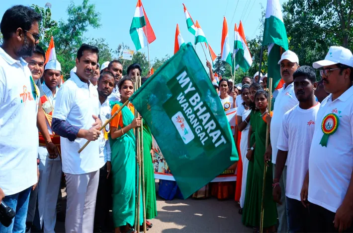 సర్దార్ వల్లభాయ్ పటేల్ 150వ జయంతిని పురస్కరించుకుని మంగళవారం జిల్లా కేంద్రం లోని ప్రభుత్వ జూనియర్ కళాశాల ఆవరణంలో కేంద్ర యువజన సర్వీసులు, క్రీడ వ్యవహారాల మంత్రిత్వ శాఖ, మేరా యువ భారత్ వరంగల్ సంస్థ ఆధ్వర్యంలో ఏర్పాటు చేసిన కార్యక్రమానికి జిల్లా కలెక్టర్ దివాకర టి.ఎస్. సర్దార్ వల్లభాయ్పటేల్, భరతమాత చిత్రపటాలకు పూలమాలవేసి నివాళులర్పించి, ఐక్యత పాదయాత్రను జెండా ఊపి ప్రారంభించారు.