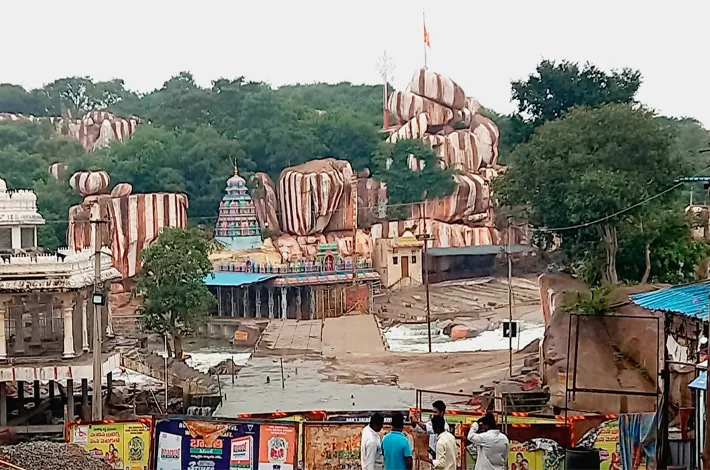 దీంతో వరదుర్గామాత ప్రధాన ఆలయం ముందున్న నదీ పాయ ఉధృతంగా ప్రవహిస్తుండటంతో బుధవారం ఉదయం ఆలయాన్ని తాత్కాలికంగా మూసివేశారు. ఉత్సవ విగ్రహాన్ని రాజగోపురంలో ఏర్పాటు చేసి భక్తులకు దర్శనం కల్పిస్తున్నారు.