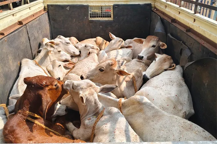 చౌటుప్పల్, డిసెంబర్ 2 (విజయ క్రాంతి): చౌటుప్పల్ మండలంలోని పంతంగి టోల్ ప్లాజా వద్ద వాహనాలు తనిఖీ చేస్తుండగా ఏపీ 39 డబ్ల్యూ ఈ 1471 ని చెక్ చేయగా పైన మొత్తం పూర్తిగా ఉల్లిగడ్డ సంచులతో కవర్ చేసి ఉండడంతో అనుమానం రావడంతో ఉల్లిగడ్డ సంచులను పైకి లేపి చూడగా అందులో పది పశువులు ఉన్నాయి. అట్టి పశువులను విశాఖపట్నంలో కొనుగోలు చేసి బహదూర్ పుర హైదరాబాద్ తరలిస్తుండగా పట్టుకోవడం జరిగింది. వాహన డ్రైవర్ పేరు భాస్కర్ సన్నాఫ్ గణేష్ వయసు 30 సంవత్సరాలు ఆర్ఓ ఆంధ్రప్రదేశ్ అని తెలిసినది. అతనిపై పోలీసులు కేసు నమోదు చేసి దర్యాప్తు ప్రారంభించారు.