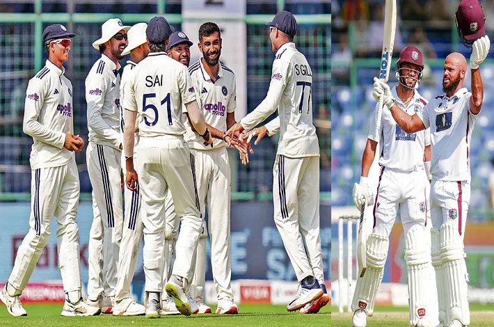 న్యూఢిల్లీ, అక్టోబర్ 13: వెస్టిండీస్పై టెస్ట్ సిరీస్ను 2 స్వీప్ చేసేందుకు భారత్ చేరువైంది. విండీస్ పోరాటంతో భారత్ విజ యం ఐదోరోజుకు వాయిదా పడిందే తప్ప ఫలితం మాత్రం ఊహించిందే.. అయితే నాలుగోరోజు విండీస్ మాత్రం అసాధరణ రీతిలో పోరాడిందనడంలో ఎలాంటి సందే హం లేదు. కాంప్బెల్,హోప్ సెంచరీలతో జట్టును ఇన్నింగ్స్ ఓటమి నుంచి తప్పించా రు. వీరిద్దరి పోరాటంతో పాటు చివర్లో గ్రీవ్స్ హాఫ్ సెంచరీతో భారత్ ముందు వంద కంటే ఎక్కువ టార్గెట్ ఉంచగలిగింది. చివరిరోజు విజయం కోసం 58 పరుగులే చేయాల్సిన నేపథ్యంలో టీమిండియా గెలుపు లాంఛనమే.