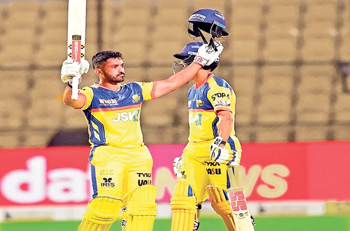 ధ్రువ్ షోరే (118 నాటౌట్), కెప్టెన్ కరుణ్ నాయర్ (122 నాటౌట్) అజేయ సెంచరీలతో చెలరేగారు. కాగా కరుణ్ నాయర్కు టోర్నీలో ఐదోది కాగా వరుసగా నాలుగో శతకం సాధించాడు. తద్వారా నారయన్ జగదీశన్ (2021 తర్వాత ఐదు సెంచరీలు సాధించిన రెండో బ్యాటర్గా నిలిచాడు.