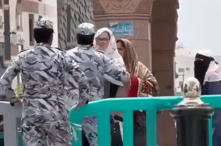 మదీనా: సౌదీ అరేబియా(Saudi Arabia)లోని మదీనాలోని ప్రవక్త మసీదులో ఒక మహిళ భద్రతా అధికారిపై దాడి చేస్తున్నట్లు చూపించే వైరల్ వీడియోకు తాము వెంటనే స్పందించామని మదీనా ప్రాంత పోలీసులు ధృవీకరించారు. వైరల్ వీడియో క్లిప్లో ప్రవక్త మసీదు ప్రాంగణంలో ఒక మహిళ భద్రతా అధికారిని చెంపదెబ్బ కొట్టడాన్ని చూపించింది. ఆ మహిళ అనధికారిక నడక మార్గాన్ని ఉపయోగించేందుకు ప్రయత్నించడాన్ని ఫుటేజ్ చూపిస్తుంది. ప్రత్యామ్నాయ మార్గాన్ని తీసుకోవాలని అధికారి ఆమెను ఆదేశించినప్పుడు, ఆమె నిరాకరించి అతనిని చెంపదెబ్బ కొట్టింది. ఆ అధికారి ఆమెను రెండుసార్లు చెంపదెబ్బ కొట్టడం ద్వారా ప్రతీకారం తీర్చుకున్నాడు. శనివారం ఒక ప్రకటనలో, సౌదీ జనరల్ డైరెక్టరేట్ ఆఫ్ పబ్లిక్ సెక్యూరిటీ పోలీసులు వెంటనే జోక్యం చేసుకుని, నిబంధనలకు అనుగుణంగా అవసరమైన అన్ని చట్టపరమైన విధానాలను పూర్తి చేశారని ధృవీకరించింది. అధికారులు ఆ మహిళ జాతీయతను వెల్లడించలేదు లేదా ఘర్షణ గురించి మరిన్ని వివరాలను అందించలేదు. చట్టాన్ని అమలు చేయడానికి, భద్రతా సిబ్బంది భద్రతను నిర్ధారించడానికి వారు తమ నిబద్ధతను పునరుద్ఘాటించారు.