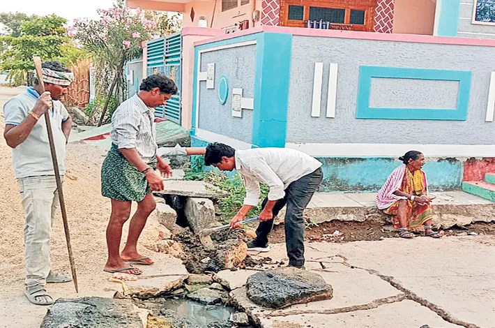 సొంత నిధులతో మురుగు నీటి సమస్యను తీర్చిన వార్డు మెంబర్