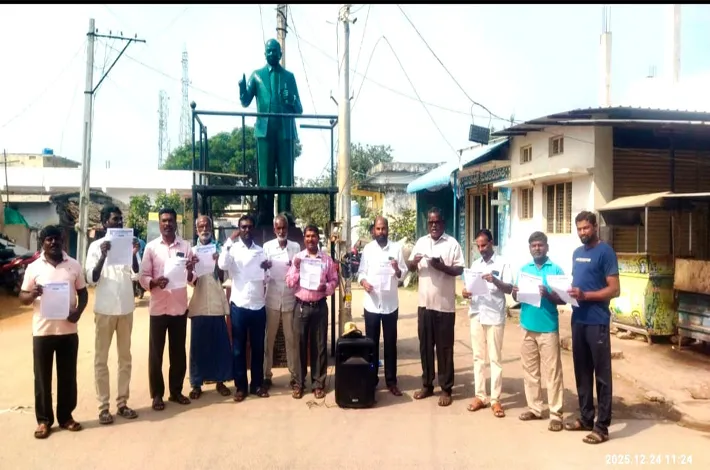 సంస్థాన్ నారాయణపూర్, డిసెంబర్ 24 (విజయ క్రాంతి): తెలంగాణ ఉద్యమకారుల జేఏసి ఆధ్వర్యంలో తెలంగాణ ఉద్యమకారుల గౌరవం - తెలంగాణ ఆత్మగౌరవం నినాదంతో హైదరాబాద్ బషీర్ బాగ్ లో ఈనెల 28న నిర్వహిస్తున్న ఉద్యమ కళాకారుల ధూంధాం బహిరంగ సభ కరపత్రాన్ని సంస్ధాన్ నారాయణపురం మండల కేంద్రంలోని అంబేద్కర్ చౌరస్తాలో టియు జెఏసి రాష్ట్ర ప్రధాన కార్యదర్శి గుండుమల్ల శ్రీనివాస్ చేతుల మీదుగా ఆవిష్కరించారు.