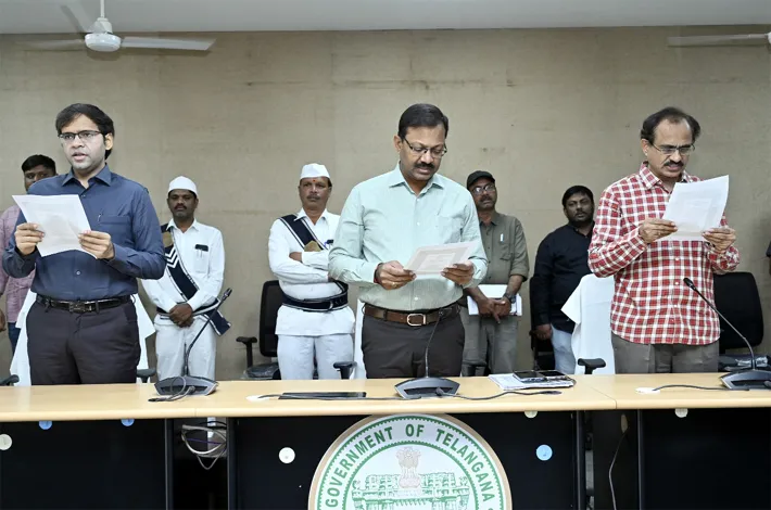 ’భారతదేశ ప్రజలమైన మేము దేశ సార్వభౌమ్య, సామ్యవాద, లౌకిక, ప్రజాస్వామ్య, గణతంత్ర రాజ్యముగా నెలకొల్పుటకు, పౌరు లందరికీ సామాజిక, ఆర్థిక, రాజకీయ, న్యాయమును, భావము, భావ ప్రకటన, విశ్వాసం, ధర్మం, ఆరాధన - వీటి స్వాతంత్య్రమును, అంతస్తులోనూ, అవకాశంలోనూ సమానత్వాన్ని చేకూర్చుటకు, అందరిలోనూ వ్యక్తి గౌరవమును, జాతి ఐక్యతను, అఖండతను కాపాడేందుకు అంకిత భావంతో కృషి చేస్తామని’ ప్రతిజ్ఞ చేశారు. ప్రతిజ్ఞ కార్యక్రమంలో అదనపు కలెక్టర్లు అంకిత్, కిరణ్ కుమార్, కలెక్టరేట్ ఏ.ఓ ప్రశాంత్, వివిధ శాఖల అధికారులు, ఉద్యోగులు పాల్గొన్నారు.