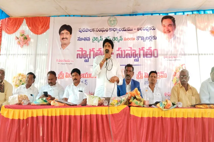 అలంపూర్, ఫిబ్రవరి 19:అలంపూర్ పట్టణ ప్రజల అభివృద్ధి సంక్షేమం కోసం తోడ్పడాలనిఎమ్మెల్యే విజయుడు అన్నారు. ఈ మేరకు గురువారం అలంపూర్ మున్సిపల్ చైర్మన్ గా పిండి జయరాములు బాధ్యతల స్వీకరణ కార్యక్రమానికి ఎమ్మెల్యే విజయుడు ముఖ్యఅతిథిగా హాజరయ్యారు. అనంతరం ఏర్పాటు చేసిన కార్యక్రమంలో ఎమ్మెల్యే మాట్లాడారు. పాలకవర్గంలో ఎలాంటి ఒడిదుడుకులు రాకుండా పాలన సజావుగా కొనసాగేలా అందరి సమన్వయంతో ముందుకు వెళ్లాలని ఈ సందర్భంగా చైర్మన్ కు సూచించారు. ముందుగా చైర్మన్ పిండి జయరాములు పూజ అనంతరం బాధ్యతలు స్వీకరించారు.