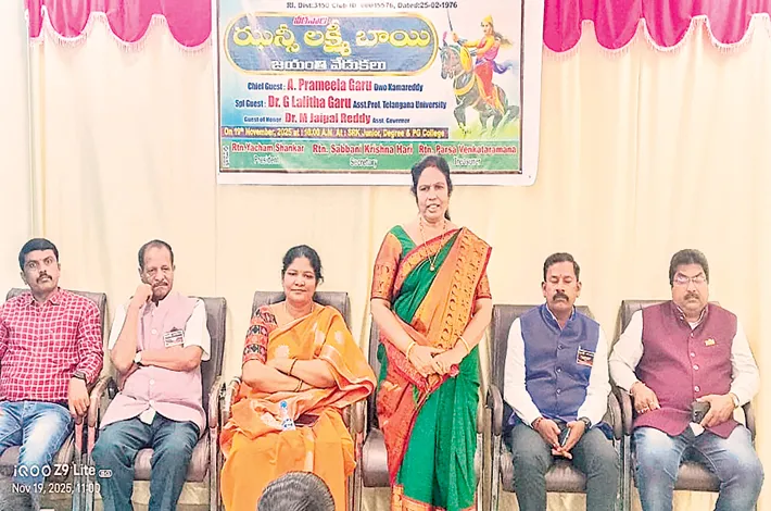 కామారెడ్డి, నవంబర్ 19 (విజయ క్రాంతి): సమాజంలో మహిళలకు మంచి గౌరవం ఉంటుందని చరిత్ర తెలుసుకొని ముందుకు వెళ్లాలని జిల్లా మహిళా శిశు సంక్షేమ శాఖ అధికారులు ప్రమీల అన్నారు. బుధవారం ఝాన్సీ లక్ష్మీబాయి జయంతి ఉత్సవాలను ఎస్ఆర్కె డిగ్రీ కళాశాలలో రోటరీ క్లబ్ ఆధ్వర్యంలో నిర్వహించారు. వీరనారి ఝాన్సీ లక్ష్మీబాయి జయంతి సంద ర్భంగా జిల్లా మహిళా సంక్షేమ శాఖ అధికారులు ప్రమీల మాట్లాడుతూ విద్యార్థులకు ఝాన్సీ లక్ష్మీబాయి గురించి తెలియజేస్తూ అతి చిన్న వయసులో వీరవనితగా పేరుపొందినటువంటి వ్యక్తి ఝాన్సీ లక్ష్మీబాయి అని తెలిపారు.