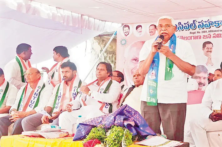 ఎల్బీనగర్, ఫిబ్రవరి 11 : జీహెచ్ఎంసీ కార్మికులు చేస్తున్న సేవలవను కాంగ్రెస్ ప్రభుత్వం కచ్చితంగా గుర్తిస్తుందని, కార్మికుల సమస్యల పరిష్కారానికి ఐఎన్టీయూసీ, టీజేఏసీ, జీహెచ్ఎంసీ కార్మిక యూనియన్ నాయకులతో కలిసి ప్రభుత్వంతో చర్చించి పరిష్కరించుకుంటామని ఎమ్మెల్సీ ప్రొఫెసర్, కోదండరాం అన్నారు. మంగళవారం సరూర్ నగర్ సర్కిల్ కార్యాలయం ఆవరణలో ఐఎన్టీయూసీ అనుబంధ సంస్థ మున్సిపల్ సహకార్ మజ్దూర్ యూనియన్ ఆధ్వర్యంలో ఏర్పాటు చేసిన సమావేశానికి టీజేఏసీ (తెలంగాణ జన సమితి) సంపూర్ణ మద్దతు తెలిపింది.