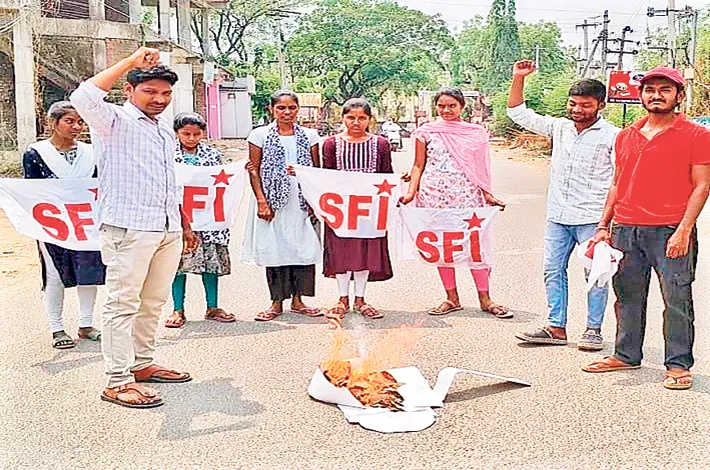 ఎస్ఎఫ్ఐ ఆధ్వర్యంలో ప్రభుత్వ దిష్టిబొమ్మ దగ్ధం