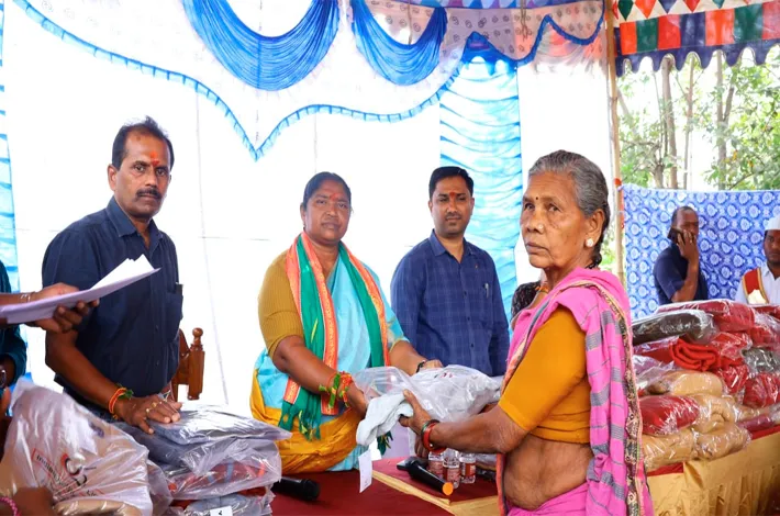 ములుగు,తాడ్వాయి,డిసెంబర్24(విజయక్రాంతి):గ్రామస్థులకు స్థానికంగా అడవిలో దొరికే వనరులతో ఉపాధి కల్పిస్తాం అని రాష్ట్ర పంచాయతీరాజ్, గ్రామీణ అభివృద్ధి, గ్రామీణ నీటి సరఫరా, మహిళా శిశు సంక్షేమ శాఖ మంత్రి ధనసరి అనసూయ సీతక్క అన్నారు.బుదవారం ఎస్ ఎస్ తాడ్వాయి మండలంలోని కన్నేపల్లి గ్రామంలో వృద్ధులకు, గ్రామస్తులకు దుప్పట్ల పంపిణీ కార్యక్రమంలో ముఖ్య అతిథిగా మంత్రి సీతక్క పాల్గొని, జిల్లా కలెక్టర్ దివాకర టి.ఎస్. తో కలిసి దుప్పట్లు పంపిణీ చేశారు.
