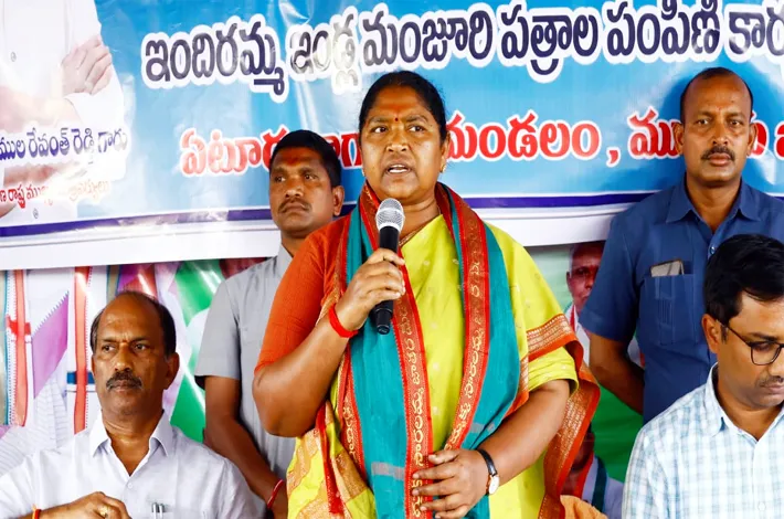 ఏటూరునాగారం, మార్చి1 (విజయక్రాంతి): అర్హులైన నిలువ నీడలేని ప్రతి ఒక్కరికి ఇందిరమ్మ పథకంలో ఇండ్లు మంజూరు చేస్తామని, మంజూరైన ఇండ్లను త్వరితగతిన నిర్మించుకోవాలని రాష్ట్ర పంచాయతీరాజ్ శాఖ మంత్రి సీతక్క అన్నారు. ములుగు జిల్లా ఏటూరునాగారం మండల కేంద్రంలో నిర్వహించిన కార్యక్రమంలో కొండాయి గ్రామానికి చెందిన 90మంది లబ్ధిదారులకు ఇందిరమ్మ ఇండ్ల మంజూరు పత్రాలను, ఏటూరునాగారం మండలనికి చెందిన 38మంది లబ్ధిదారులకు చెక్కులను అందజేశారు.