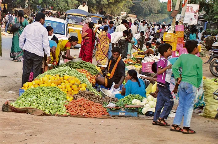 ప్రతీ సోమవారం జరిగే సంతలో చుట్టుపక్కల గ్రామాల రైతులు పండించిన పంటను అమ్ము కునేందుకు ఇక్కడికి వస్తారు. తెచ్చిన కూరగాయలను జనం దృష్టిలో పడాలని రోడ్డుపైన గంపలు, కుప్పలు పెట్టి అమ్మేందుకు కూర్చుంటారు.