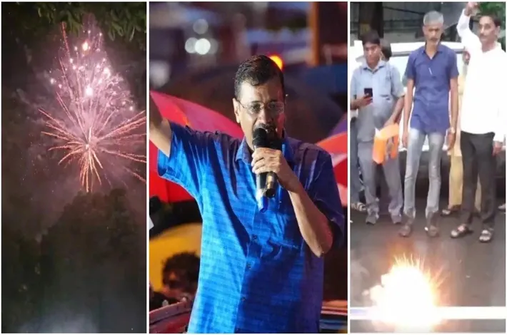 కేజ్రీవాల్కు పటాకులతో వెల్కమ్