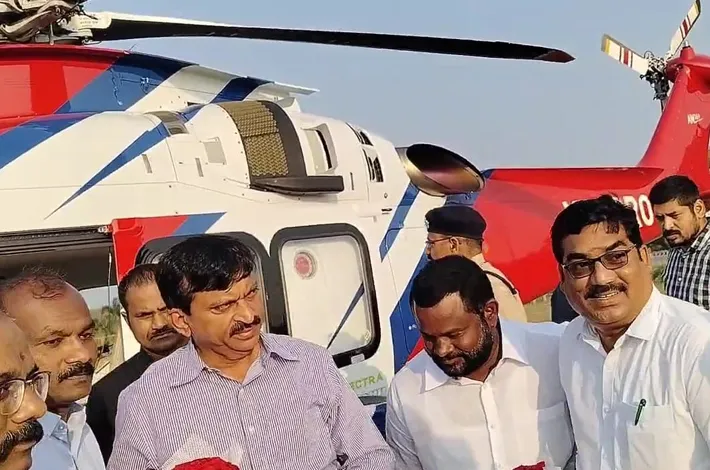 మోతె: రాష్ట్ర సమాచార, రెవెన్యూ, గృహనిర్మాణ శాఖ మంత్రి పొంగులేటి శ్రీనివాస్ రెడ్డి ఖమ్మం జిల్లా పర్యటనలో భాగంగా సూర్యాపేట - ఖమ్మం జిల్లా సరిహద్దు అయిన మోతె మండల పరిధిలోని మామిళ్ళగూడెం(సింగరేణిపల్లి) టోల్ ప్లాజా వద్దకు హెలికాప్టర్ ద్వారా లాండింగ్ కావడంతో సూర్యాపేట ఇంచార్జ్ ఆర్డీవో కృష్ణయ్య, మోతే ఎమ్మార్వో వెంకన్న, రెవెన్యూ ఇన్స్పెక్టర్ కరుణాకర్ రెడ్డిలు మంత్రి పొంగులేటి శ్రీనివాస్ రెడ్డికి పుష్పగుచ్చం ఇచ్చి స్వాగతం పలికారు. అనంతరం రోడ్డు మార్గంలో ఖమ్మం జిల్లా పర్యటన చేపట్టారు.