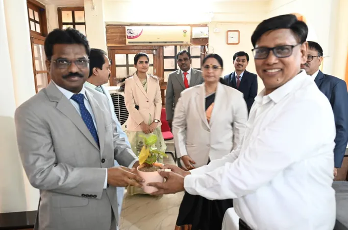 నిర్మల్ (విజయక్రాంతి): ఆదివారం జిల్లా పర్యటనకు వచ్చిన రాష్ట్ర హైకోర్టు న్యాయమూర్తి కె.లక్ష్మణ్ కు అదనపు కలెక్టర్ (రెవెన్యూ) కిషోర్ కుమార్ స్వాగతం పలికారు. పట్టణంలోని అటవీ వసతి గృహంలో అదనపు కలెక్టర్, న్యాయమూర్తికి పూల మొక్కలు అందజేసి స్వాగతం పలికారు. న్యాయమూర్తికి స్వాగతం పలికిన వారిలో జిల్లా కోర్టు ప్రధాన న్యాయమూర్తి శ్రీవాణి, ఏఎస్పీ రాజేష్ మీనా, ఆర్డీవో రత్న కళ్యాణి, ఇతర అధికారులు, తదితరులు ఉన్నారు.