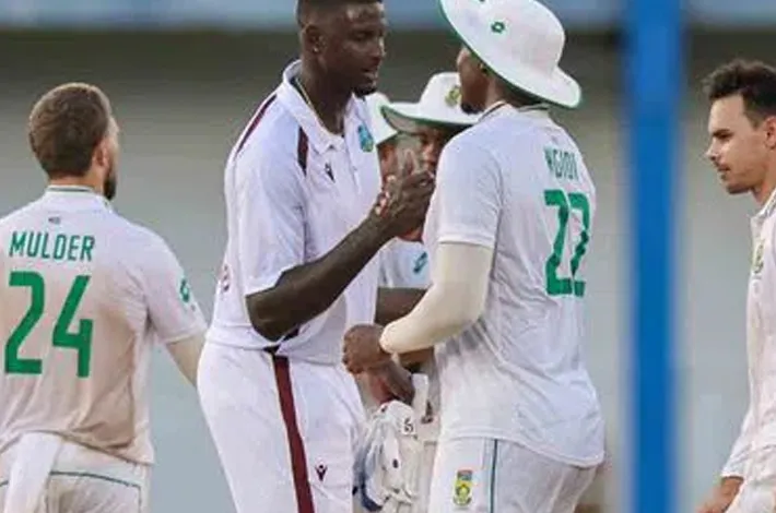తొలి ఇన్నింగ్స్లో తక్కు వ పరుగులకే ఆలౌట్ అయిన సౌతాఫ్రికా రెండో ఇన్నింగ్స్లో మాత్రం విండీస్ బౌలర్లను ధీటుగా ఎదుర్కొంది. బౌలింగ్కు విప రీతంగా సహకరిస్తున్న పిచ్పై ఆచితూచి ఆడి న సఫారీ బ్యాటర్లు పరుగులు రాబట్టారు. విండీస్ బౌలర్లలో జెడెన్ సీల్స్ 6 వికెట్లు పడగొట్టగా.. మోటీ, వర్రికాన్ చెరో 2 వికెట్లు తీశారు. తొలి ఇన్నింగ్స్లో సఫారీలు 160పరుగులకు ఆలౌట్ కాగా.. వెస్టిండీస్ తొలి ఇన్నింగ్స్లో 144 పరుగులకే కుప్పకూలడం తో సౌతాఫ్రికాకు 16 పరుగుల స్వల్ప ఆధి క్యం లభించింది. ఇరుజట్ల మధ్య జరిగిన తొలి టెస్టు డ్రాగా ముగిసిన సంగతి తెలిసిందే.