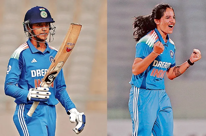 తర్వాత వచ్చిన డియోల్ (44) కూడా రెచ్చిపోవడంతో భారత స్కోరు బోర్డు జెట్ వేగంతో పరుగులు పెట్టింది. సెంచరీ చేసేలా కనిపించిన మంధాన చివరికి 91 పరుగుల వ్యక్తిగత స్కోరు వద్ద జేమ్స్ బౌలింగ్లో ఎల్బీడబ్ల్యూగా వెనుదిరిగింది. తర్వాత వచ్చిన కెప్టెన్ కౌర్, రిచా ఘోష్, జెమీమా , దీప్తి శర్మ వేగంగా పరుగులు చేయడంతో భారత్ 300 పరుగుల మార్కును క్రాస్ చేసింది.