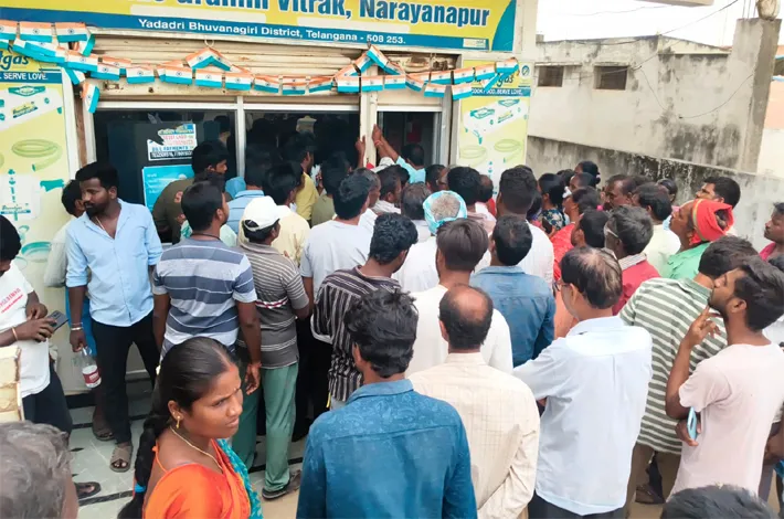 సంస్థాన్ నారాయణపూర్, మార్చి 25: రాష్ట్రంలో గ్యాస్ కొరత లేదంటూ ప్రభుత్వ అధికారులు చెబుతున్నప్పటికీ క్షేత్ర స్థాయిలో పరిస్థితి అందుకు భిన్నంగా ఉంది. గ్యాస్ ఏజెన్సీల వద్ద క్యూలైన్లలో జనాలు ఖాళీ సిలిండర్లతో బారులు తీరి ఎదురుచూస్తున్నారు. ప్రభుత్వం బుకింగ్ కోసం విధించిన నిబంధనలతో ఒకవైపు, ఏజెన్సీల నిర్లక్ష్యంతో మరోవైపు ప్రజలు తీవ్ర అసహనం వ్యక్తం చేస్తున్నారు.