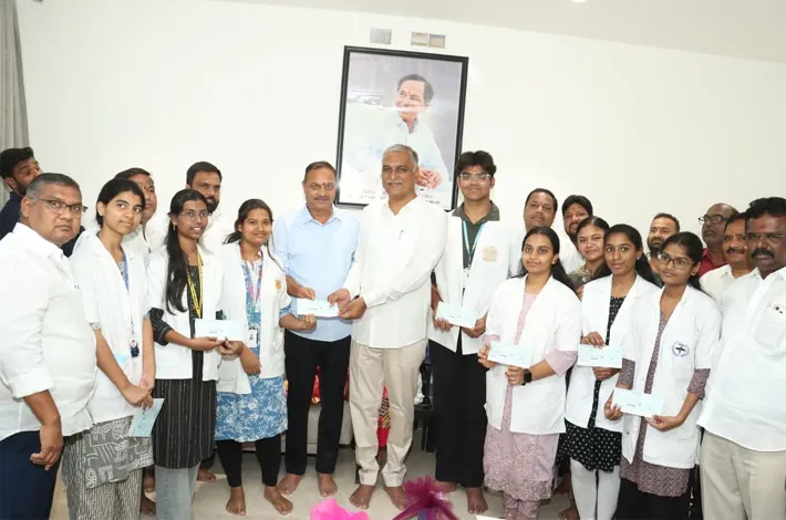 మంగళవారం ఉప్పల్ ఎమ్మెల్యే బండారి లక్ష్మారెడ్డి ఆధ్వర్యంలో హరీశ్ రావు నివాసంలో ఏడుగురు ఎంబీబీఎస్ విద్యార్థులకు చెక్కులు అందజేశారు. బీఎల్ఆర్ చారిటబుల్ ట్రస్ట్ ఆధ్వర్యంలో వైద్య విద్యార్థులకు చెక్కులు అందజేయడం అభినందనీయమన్నారు.