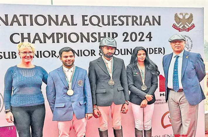 న్యూఢిల్లీ: జూనియర్ నేషనల్ ఈక్వేస్ట్రియన్ చాంపియన్షిప్ ఫస్ట్ హాఫ్ పోటీల్లో యువ రైడర్లు అనుపతి నవ్యశ్రీ, రాజుసింగ్ విజేతలుగా నిలిచారు. యంగ్ రైడర్ కేటగిరీలో నవ్యశ్రీ 32.60 పాయింట్లు స్కోరు చేసి తొలి స్థానంలో నిలిచింది. నవ్యశ్రీ తర్వాతి స్థానాల్లో అవిక్ భాటియా, గీతిక టిక్కిషెట్టి, మోను కుమార్లు ఉన్నారు. ఇక డ్రెస్సేజ్ ఫ్రీస్టుల్లో రాజు సింగ్ 65.18 పాయింట్లతో అగ్రస్థానాన్ని కైవసం చేసుకోగా.. జవీర్ వర్మ, గీతిక, నవ్యశ్రీ మంచి పోటీ ఇచ్చారు. పిల్లల డ్రెస్సేజ్ కేటగిరీలో సుభ్ చౌదరీ విజేతగా నిలవగా.. ప్రణవ్ దీపక్, పున్నీత్ తర్వాతి స్థానాల్లో ఉన్నారు. టోర్నీలో రెండో దశ పోటీలు శుక్రవారం నుంచి మొదలుకానున్నాయి.