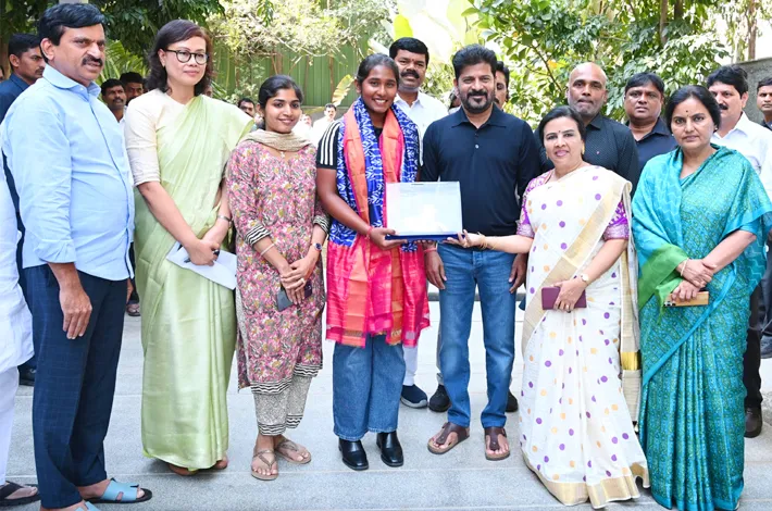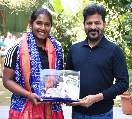 హైదరాబాద్,(విజయక్రాంతి): అండర్ -19 మహిళల T20 ప్రపంచ కప్లో ప్లేయర్ ఆఫ్ ది టోర్నమెంట్ గా నిలిచి టీమ్ ఇండియా విజయంలో కీలకపాత్ర పోషించిన గొంగడి త్రిషను ముఖ్యమంత్రి రేవంత్ రెడ్డి అభినందించారు. ఇటీవల మలేషియాలో జరిగిన మహిళ అండర్ -19 ప్రపంచ కప్లో అద్భుతంగా రాణించిన త్రిష తన కుటుంబ సభ్యులతో కలిసి జూబ్లీహిల్స్ నివాసంలో ముఖ్యమంత్రిని మర్యాద పూర్వకంగా కలిశారు. అనంతరం సీఎం ఆమెను శాలువాతో సత్కరించి, ప్రోత్సాహకంగా కోటి రూపాయలు నజరానా ప్రకటించారు.
