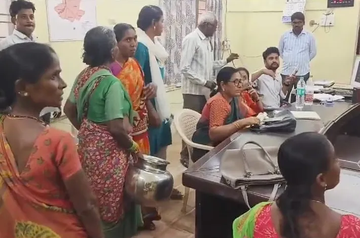 తుంగతుర్తి: సూర్యాపేట జిల్లా తుంగతుర్తి మండల కేంద్రంలోని నాలుగవ వార్డులో గత కొన్ని రోజులుగా త్రాగునీడు రావడంలేదని సోమవారం స్థానిక తహసిల్దార్ కార్యాలయానికి వచ్చి ఎమ్మార్వో ఛాంబర్ లో ఖాళీ బిందెలతో నిరసన వ్యక్తం చేశారు. త్రాగునీరు పైపులైన్లను మరమ్మత్తులు చేయాలని పలుమార్లు సంబంధిత అధికారులకు ఫిర్యాదు చేసిన పట్టించుకోలేదని ఆందోళన వ్యక్తం చేశారు. అనంతరం తహసిల్దార్ కాటమయ్యకు సమస్యను వివరించి వినతిపత్రం అందజేశారు. ఈ కార్యక్రమంలో సిపిఐ మండల కార్యదర్శి కోట రామస్వామి, మహిళలు త్రివేణి, నాగమ్మ, సోమలక్ష్మి, నాగమ్మ, వెంకన్న, రామగిరి వెంకన్న, రజిత తదితరులు పాల్గొన్నారు.