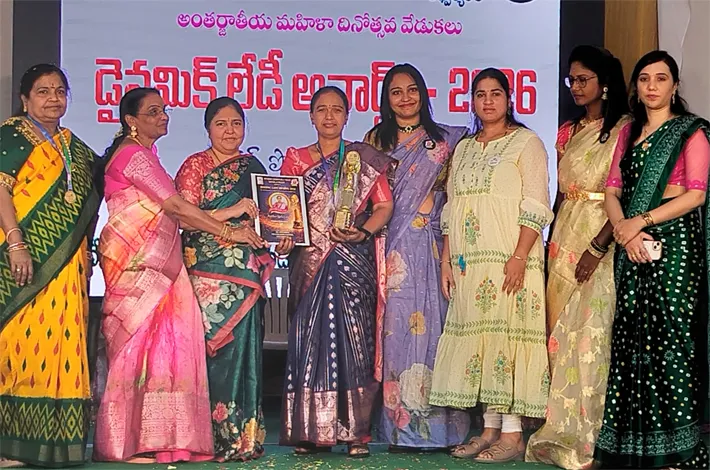 తల్లిగా,చెల్లిగా, భార్యగా, కూతురుగా మహిళలు కుటుంబ సభ్యులకు అన్ని రకాలుగా చేదోడు వాదోడుగా ఉంటూ, కుటుంబ సంరక్షణలో పాలుపంచుకుంటున్నారన్నారు. అనంతరం డైనమిక్ లేడీ అవారడ్స్ - 2026 పేరిట వివిధ రంగాలలో నిష్ణాతులైన మహిళలకు షీల్డ్లు, మెమొంటోలతో బహుమతి ప్రధానం చేశారు.ఈ కార్యక్రమంలో డాక్టర్ మేఘన, రిటైర్డ్ ఎమ్మార్వో పాలకుర్తి విజయలక్ష్మి, ప్రభుత్వ జూనియర్ కళాశాల లెక్చరర్ రజిత ఒజ్జల, నిర్వాహకులు నాగరాజు,స్వాతి, పద్మావతి, శ్రీనివాస్ తదితరులు పాల్గొన్నారు.