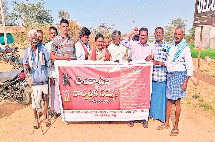 2025 విద్యుత్ సవరణ బిల్లును రద్దు చేయాలని, ప్రభుత్వ రంగ సంస్థలను పరిరక్షించాలని, కనీస వేతనాలు పెంచాలని, కార్మికుల సంక్షేమ బోర్డు ఏర్పాటు చేయాలని డిమాండ్ చేశారు. మధ్యాహ్న భోజన పథకాన్ని ప్రైవేటుపరం చేయకుండా ప్రభుత్వ ఆధ్వర్యంలోనే కొనసాగించాలని తెలిపారు.దేశవ్యాప్తంగా సుమారు 12 కోట్ల మంది ఉపాధి హామీ పథకం ద్వారా జీవనోపాధి పొందుతున్నారని, రాజన్న సిరిసిల్ల జిల్లాలోనే 90 వేల మందికి పైగా కార్మికులు ఈ పథకంపై ఆధారపడి ఉన్నారని నాయకులు పేర్కొన్నారు.